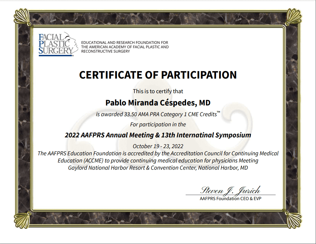 El Doctor Pablo Miranda, Otorrinolaringólogo & Cirujano Plástico Facial, participó en el 13th International Symposium of Facial Plastic Surgery, organizado por la American Academy of Facial Plastic and Reconstructive Surgery. El evento se realizó entre el 20 y 22 de Octubre en Washington, Estados Unidos.
